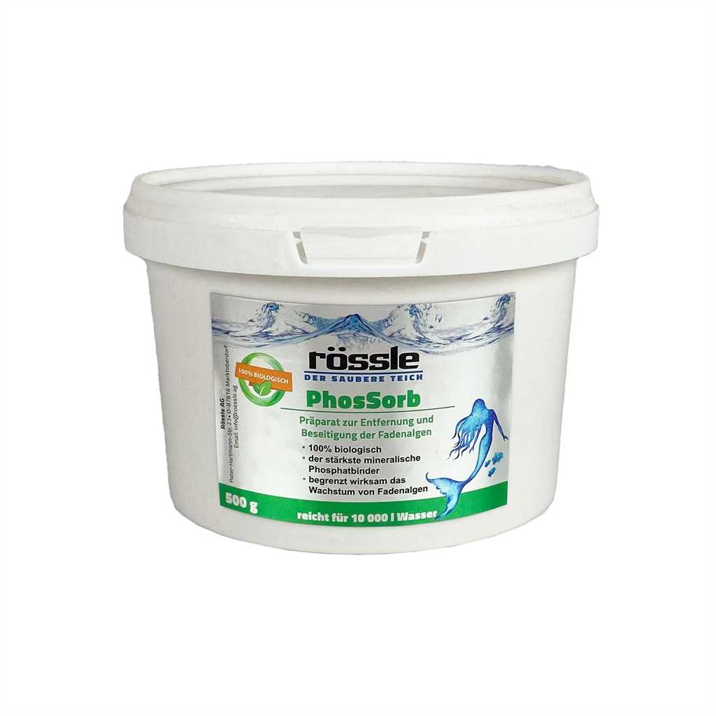 PhosSorb, 500 g, ist ein äußerst effektives, ökologisches Phosphatbindemittel. Es begrenzt außerdem die Bildung von Bodensedimenten im Teich und verhindert so die Verschlammung. Bei korrekter Dosierung ist PhosSorb unbedenklich für Menschen, Tiere und Pflanzen.